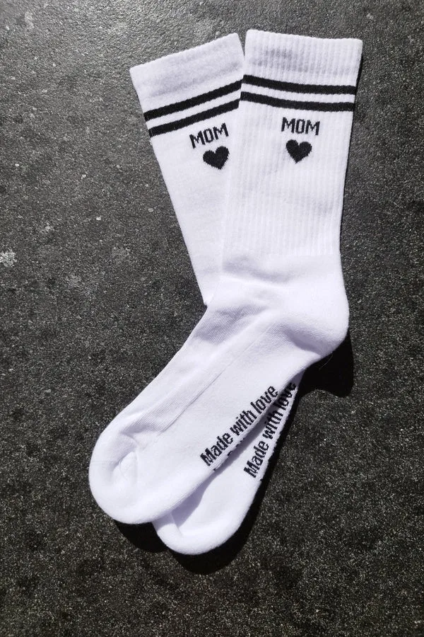 Laadukkaat tennissukat Mom tekstillä sekä sydämellä. Kestävät ja ihanan pehmeät. 80% orgaanista puuvillaa 17% polyamidi 3% elastani